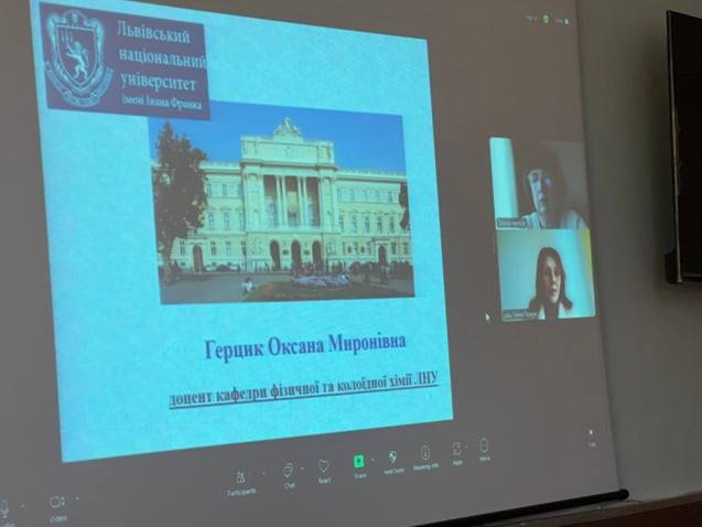 У якості лектора до нас завітала онлайн кандидат хімічних наук, доцент кафедри фізичної та колоїдної хімії Львівського національного університету імені Івана Франка Оксана Миронівна Герцик.