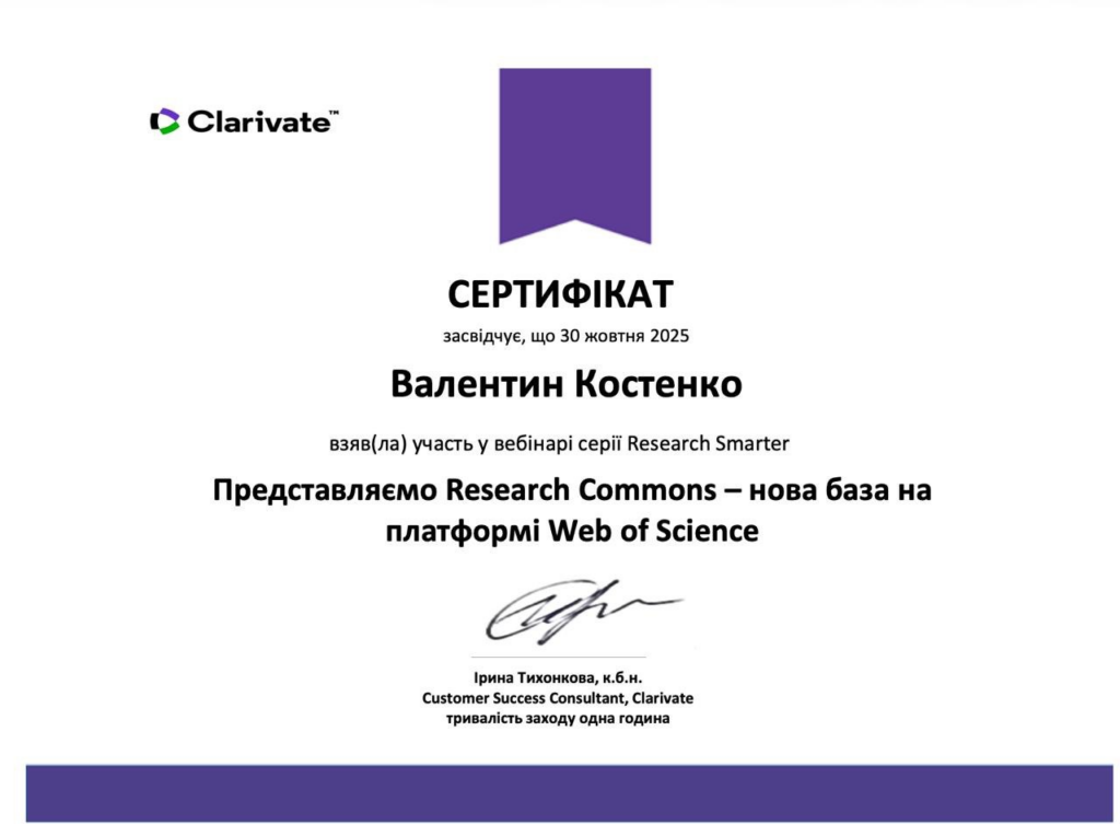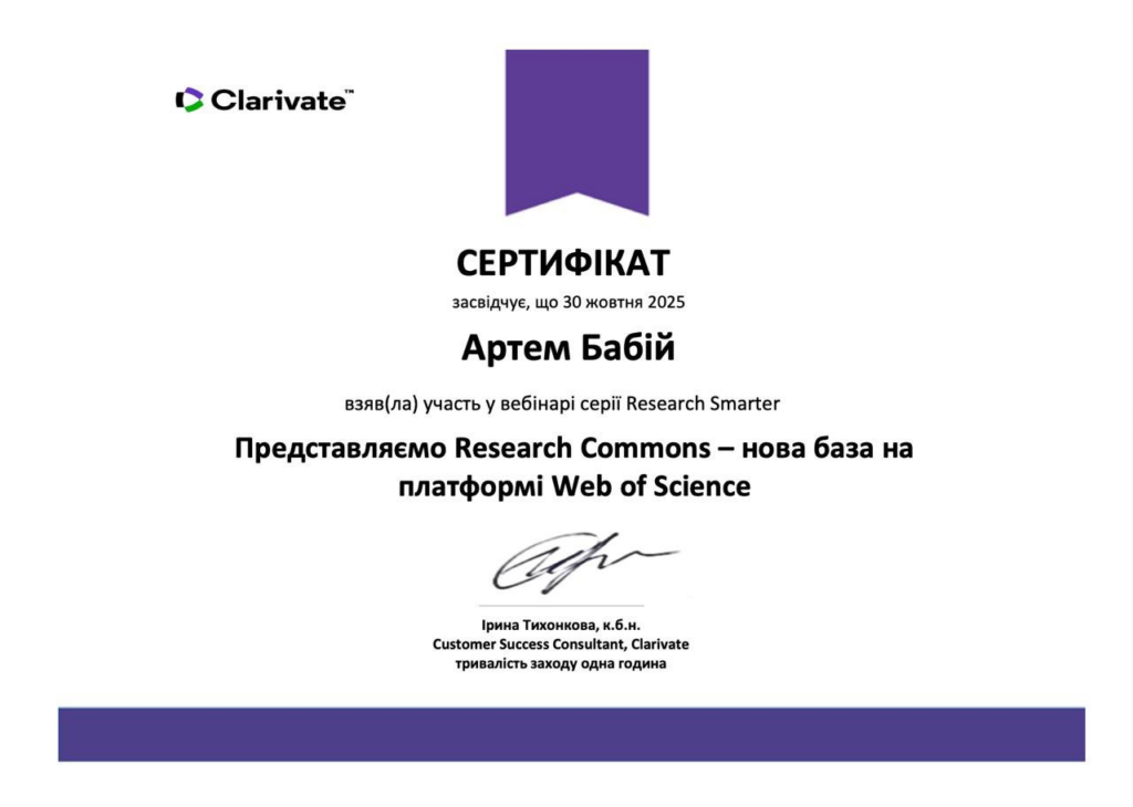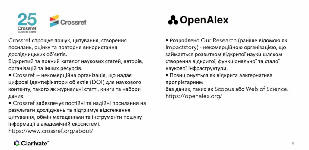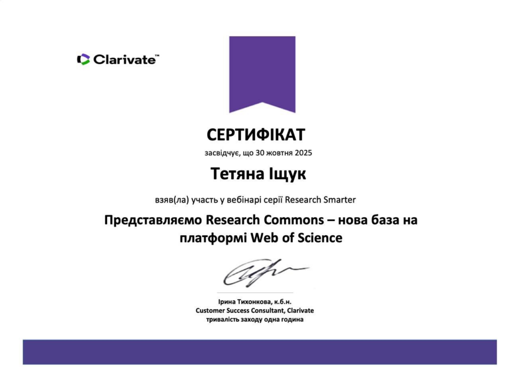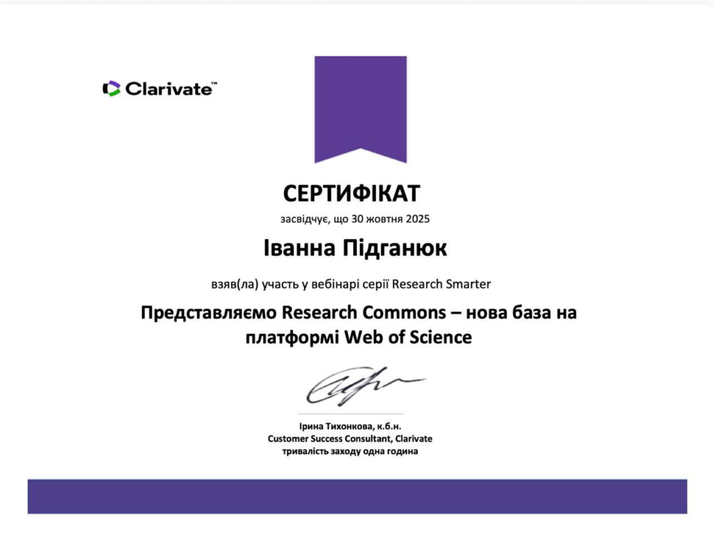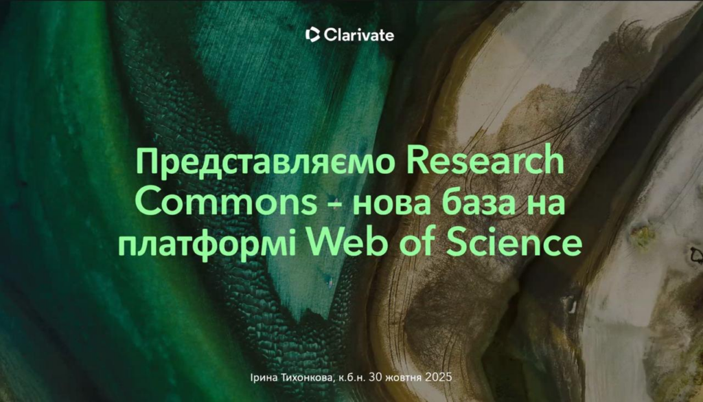 - «Представляємо Research Commons – нова база на платформі Web of Science» (30 жовтня 2025 р.).
