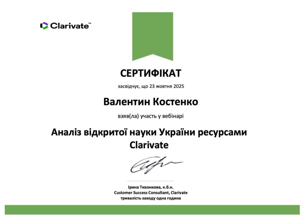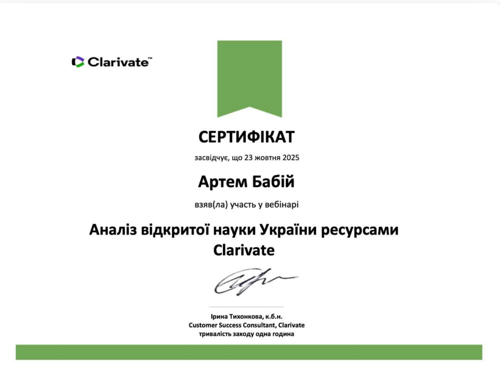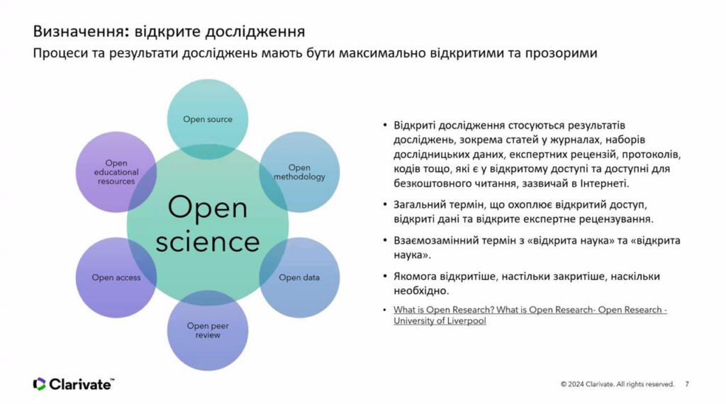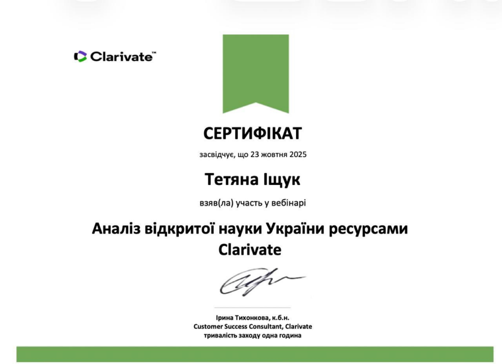 - «Аналіз відкритої науки України ресурсами Clarivate» (23 жовтня 2025 р.);